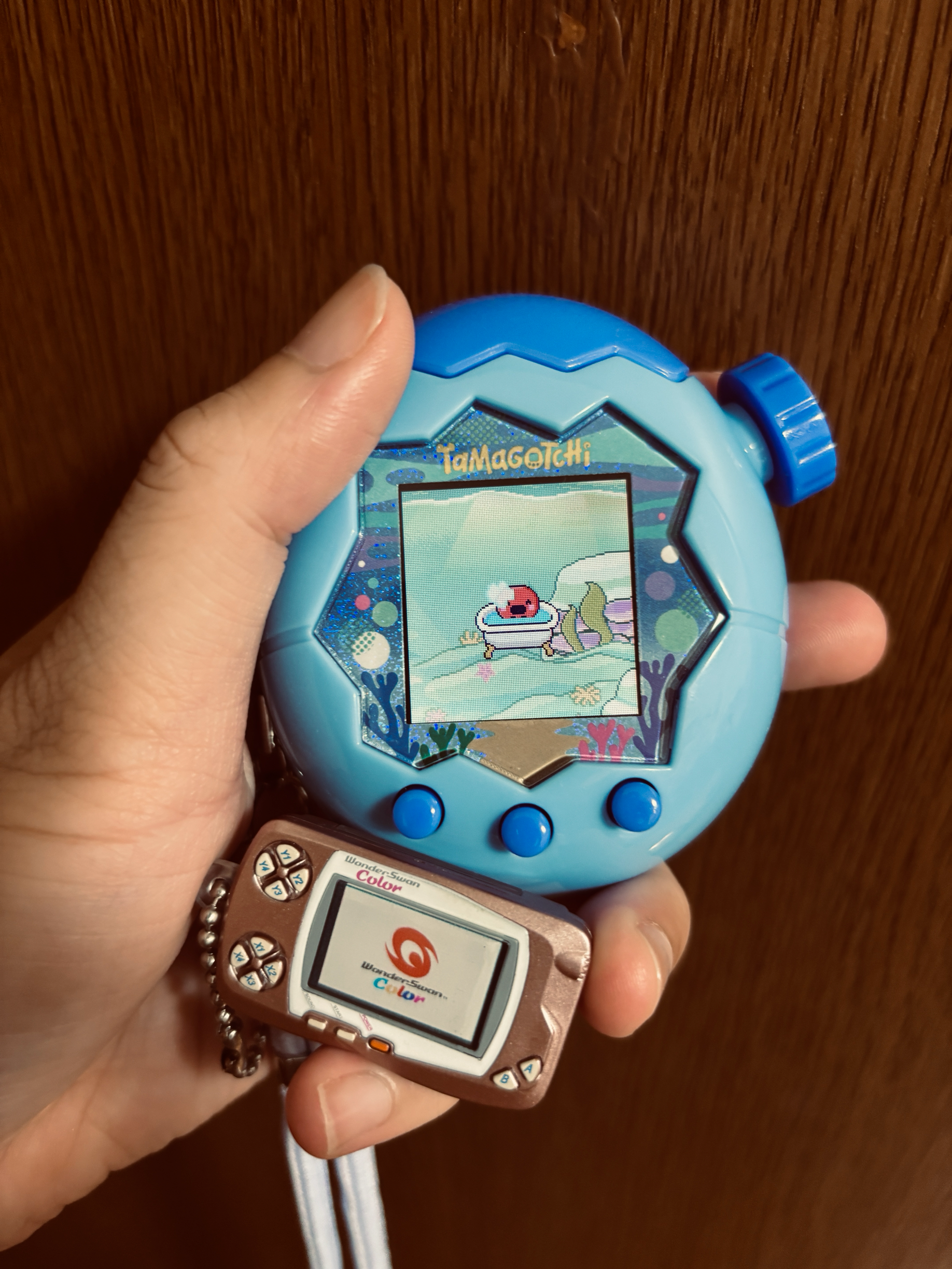たまごっちはじめました 今は亡きワンダースワン君と一緒です いや本当に全く育てる自信は無かったんですけど、姪っ子がどうしても通信したいというから…… といいつつ最近はシッターに預けれるしミニゲームにガチになりすぎてやばい ブロック崩し難しすぎないか!? 2025.8.13 ゲーム